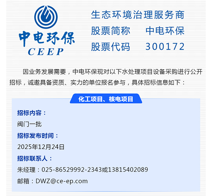 中電環(huán)保股份有限公司是南京市首家環(huán)保上市公司(股票簡稱:中電環(huán)保,股票代碼:300172),南京環(huán)保產(chǎn)業(yè)協(xié)會會長單位,國家級聯(lián)盟理事長單位,是生態(tài)環(huán)境治理服務商,主營(3+1):水務、固危廢、煙氣治理及產(chǎn)業(yè)創(chuàng)新平臺,包括:工業(yè)水處理、污水處理及水環(huán)境綜合治理;固危廢土壤、污泥餐廚垃圾處理;煙氣及VOCS治理;智慧環(huán)保;高端裝備等。